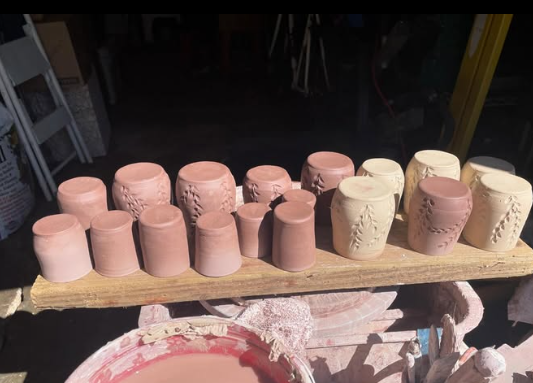 The journey begins with raw clay that is carefully worked on the potter’s wheel. The artist moistens the clay to make it malleable, then expertly forms it into functional shapes like mugs, bowls, jars, and more. This step is all about precision, as the shape is built by hand to ensure each piece is balanced and well-crafted. - Air Drying